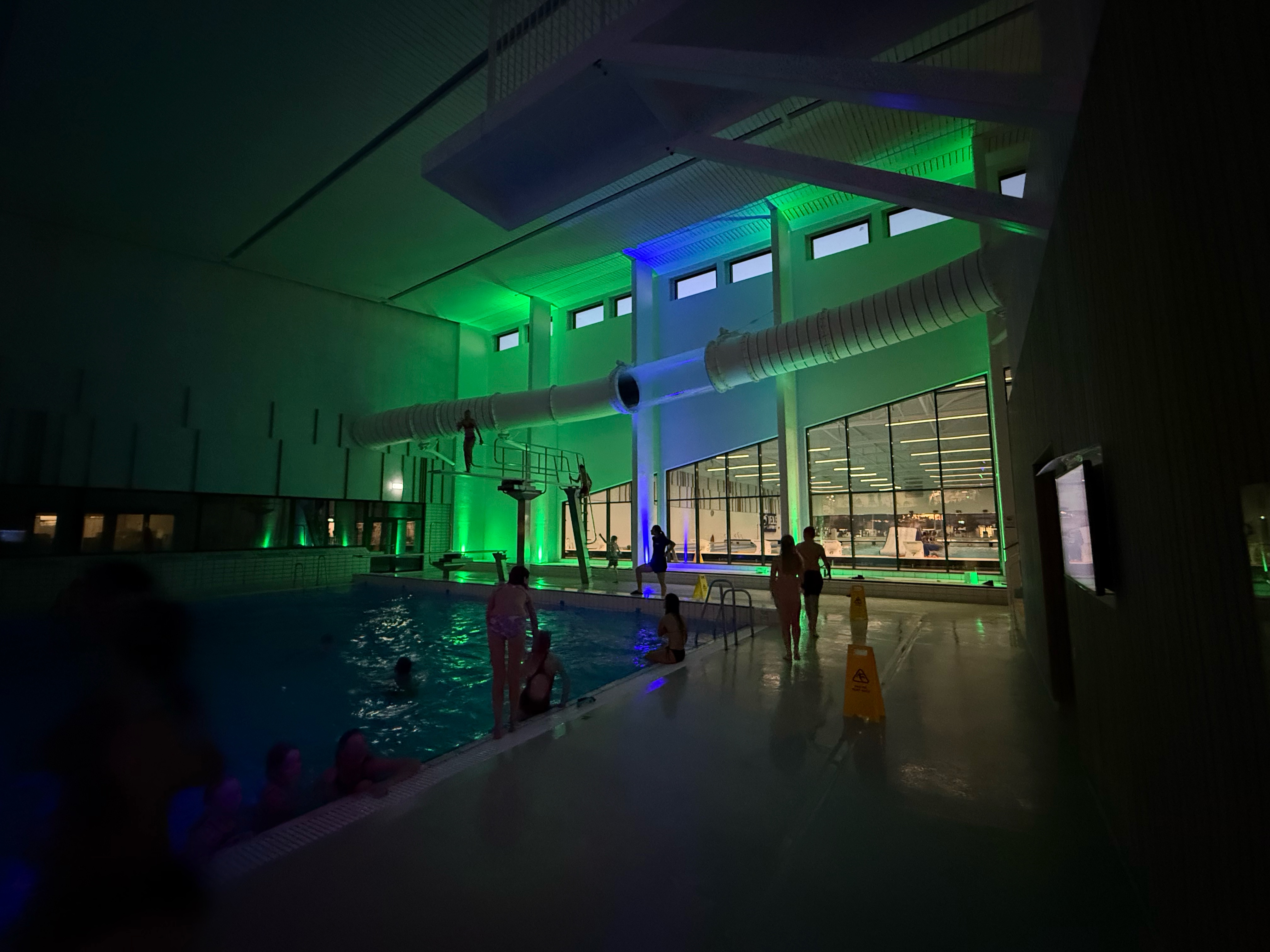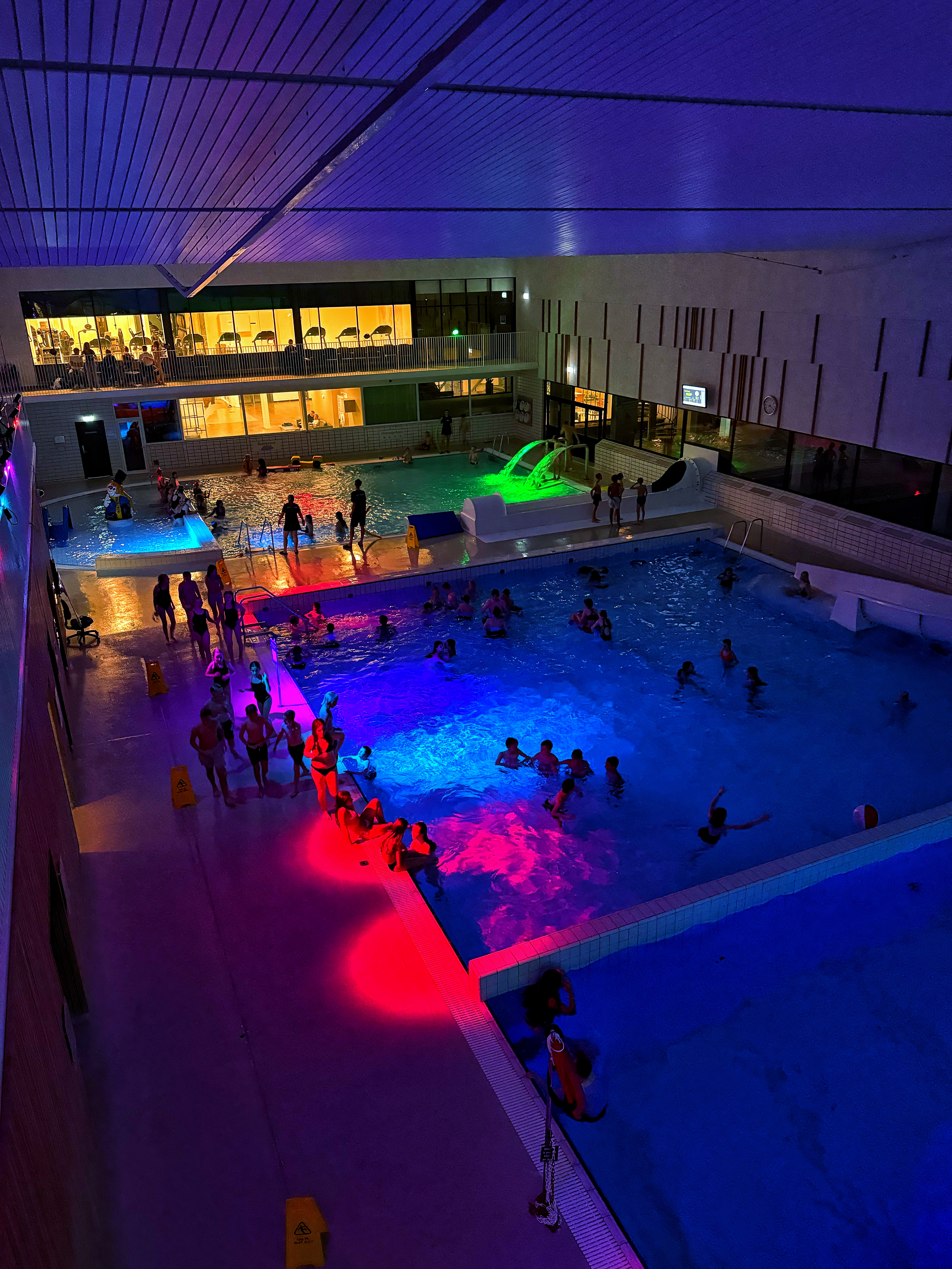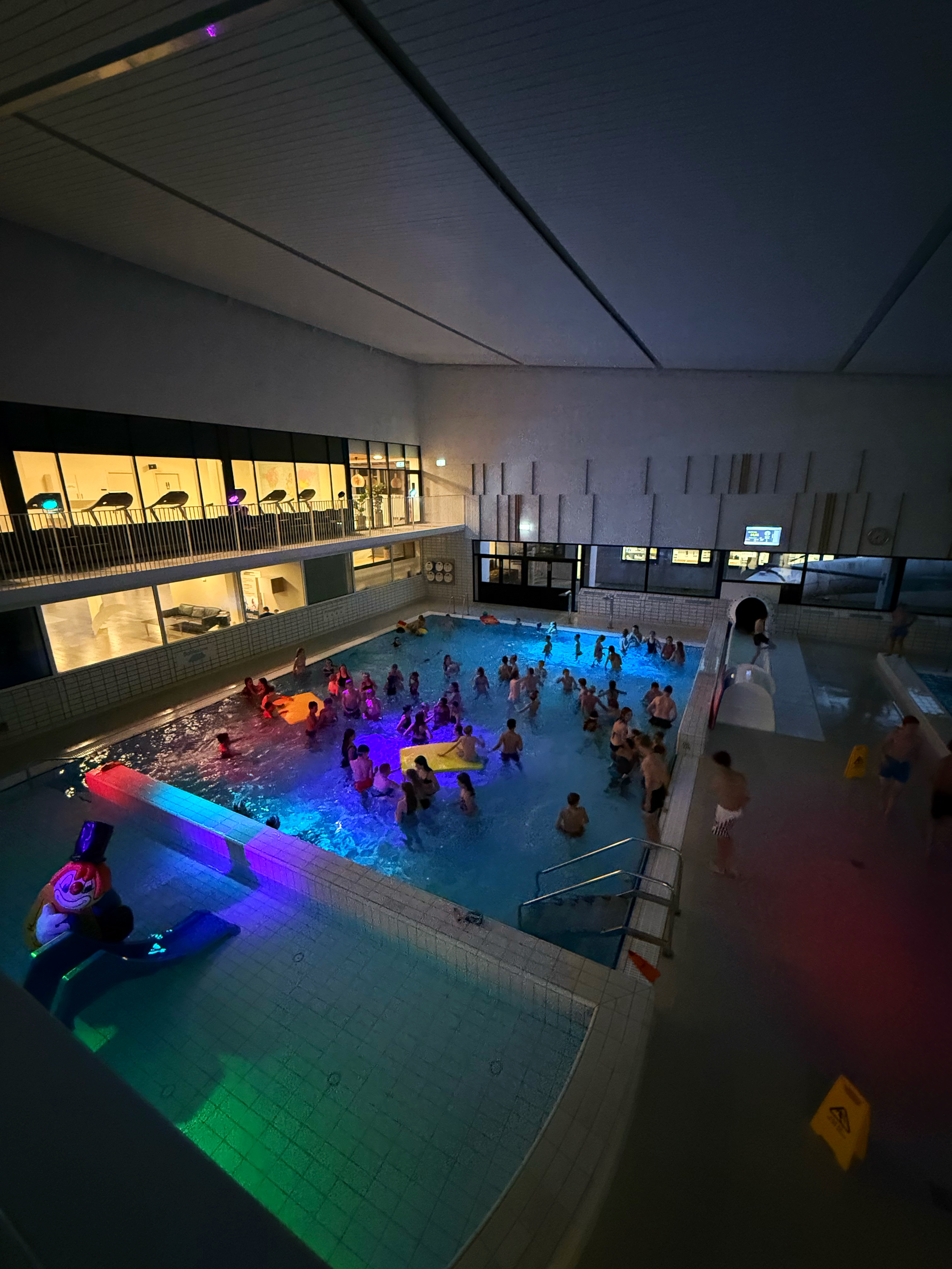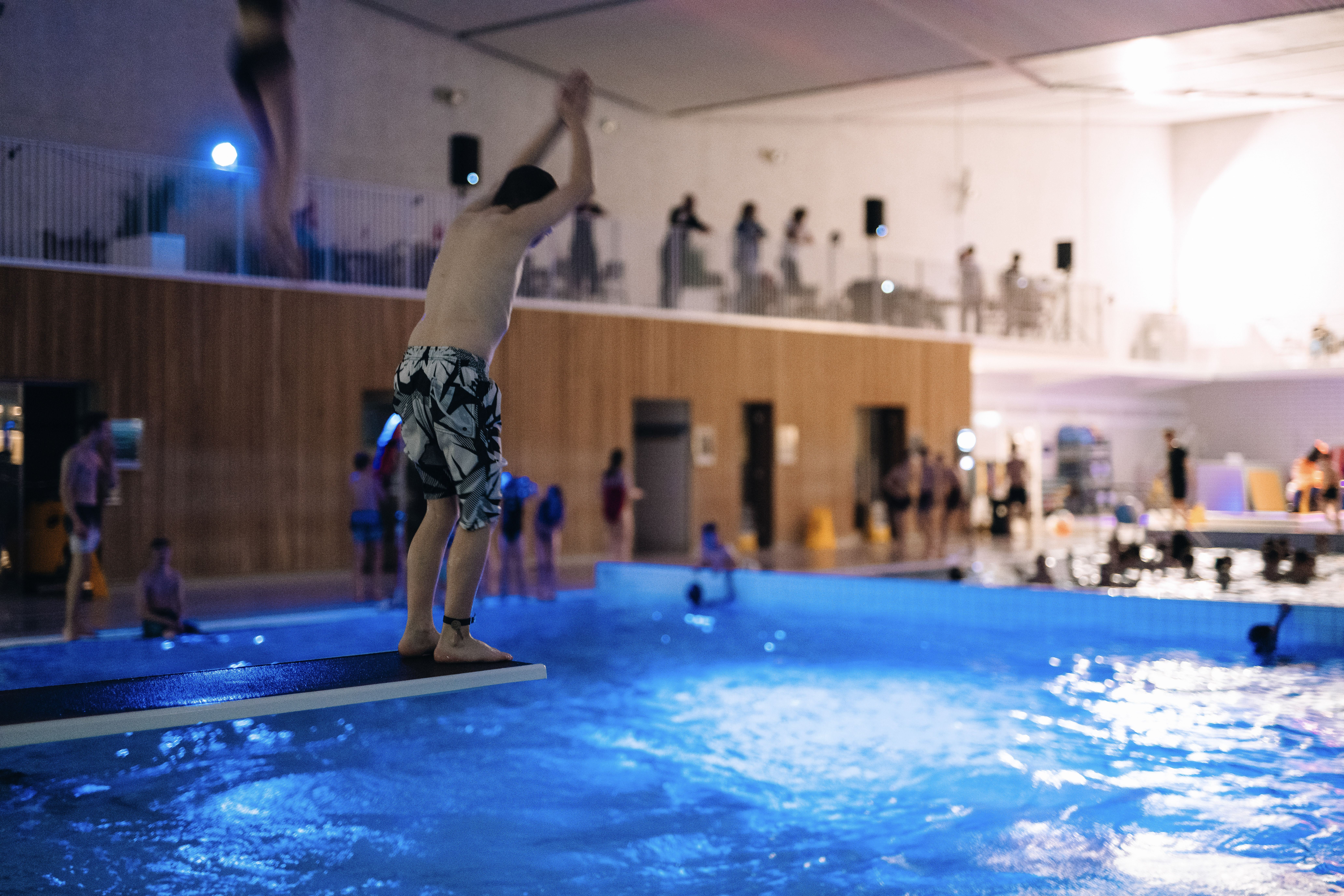 En aften for de unge, skoleklasser og efterskoler, som er klar på at holde en fest i vandet. Der er fuld knald på musikken og discolyset. Vi skal danse, hygge i sodavandsbaren og afholde sjove konkurrencer. Derudover er der naturligvis åbent for vipper, løbetæppet er rullet ud og AquaGliden står klar i sportsbassinet. Vi går all-in på at give de unge mennesker en oplevelse på deres ønsker.